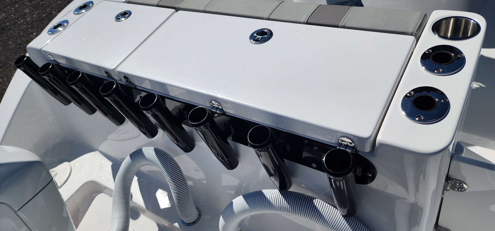 ✔ Black powder coated T-top & splashwell rod rack