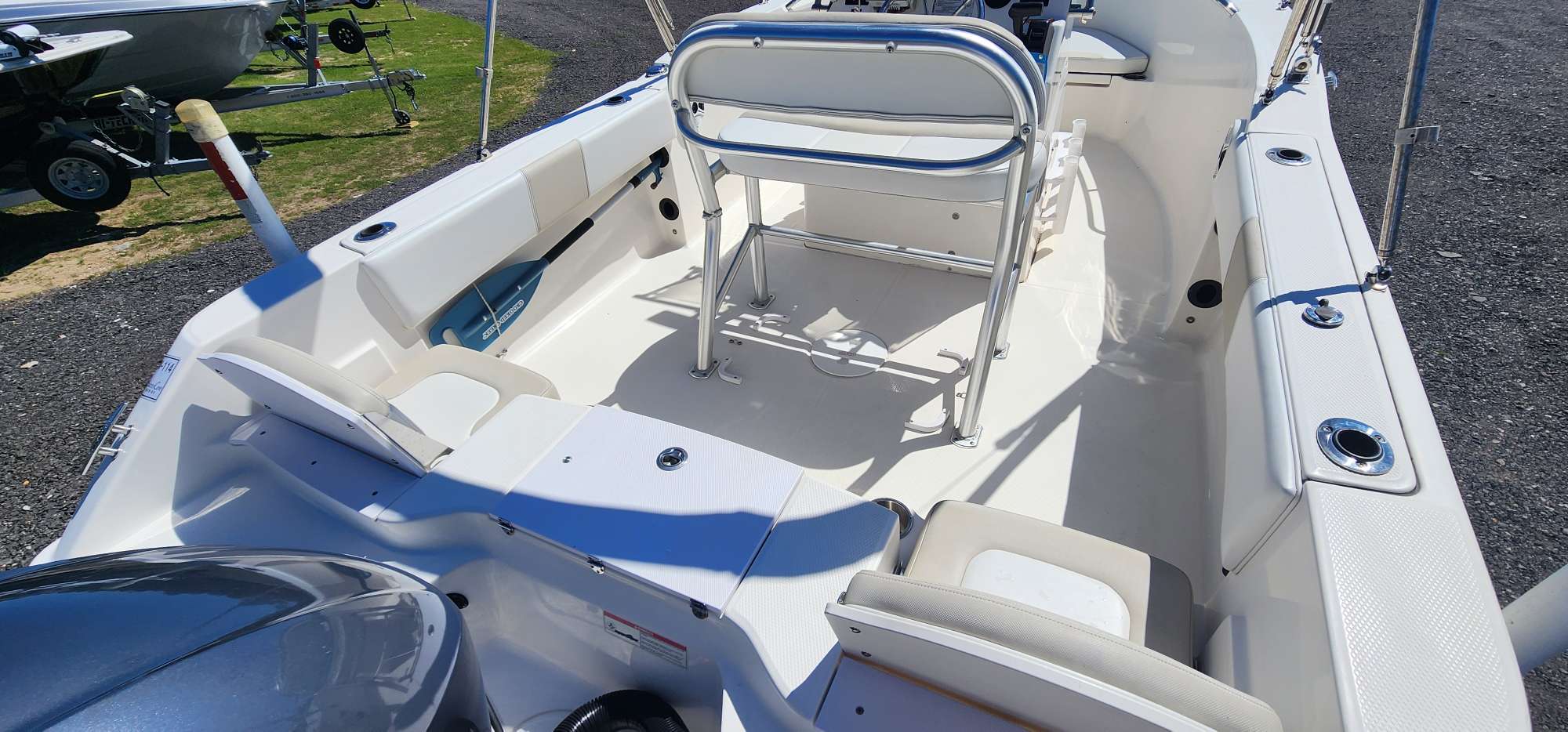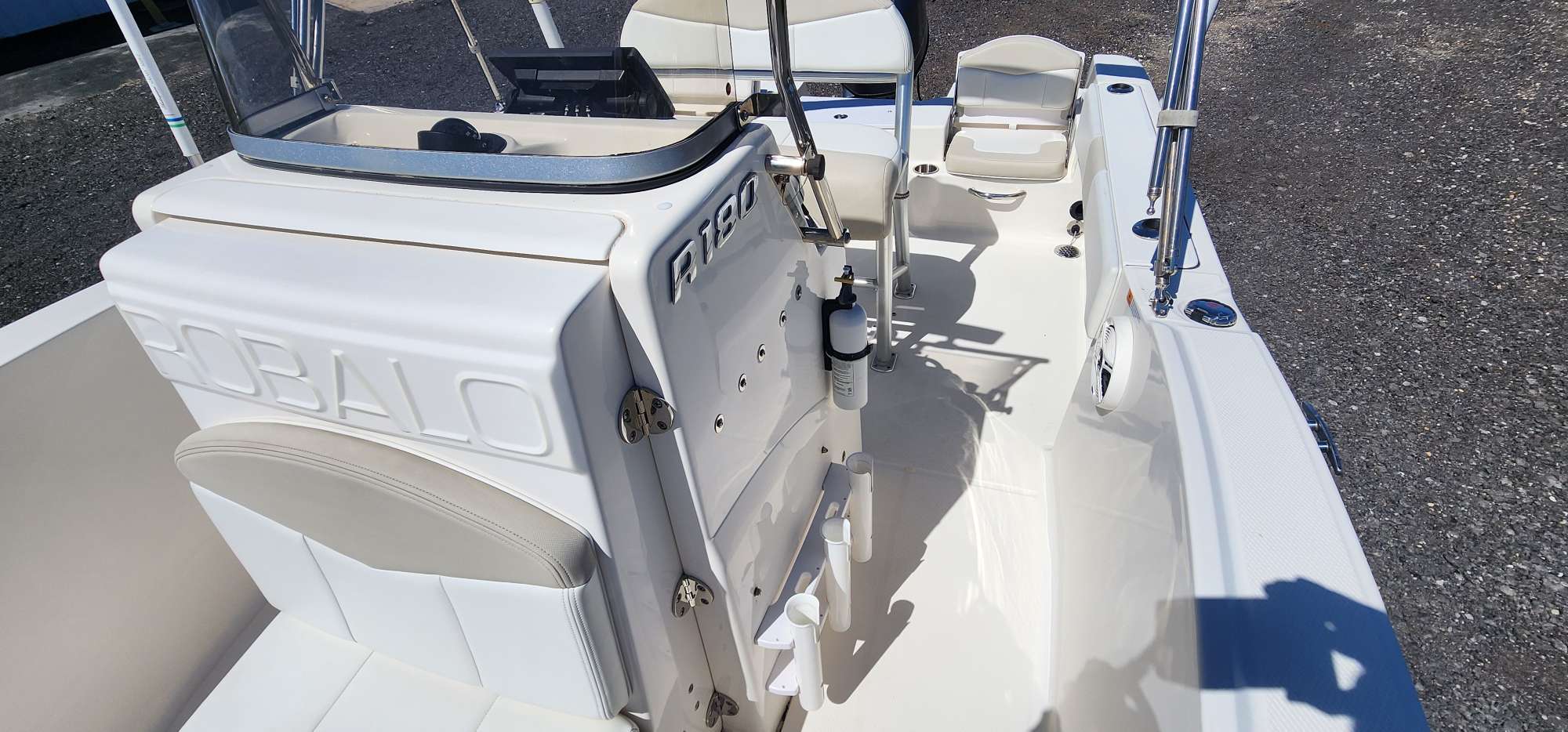 The R180 was specially crafted with adventure in mind. This vessel is equipped with twin aft seats with heavy duty hardware, making these seats durable as well as comfortable. The seats also fold away allowing the boat to be very functional for fishing. Storage is available under both aft seats and allows easy access to onboard systems and speedy servicing. A telescopic boarding ladder invites you to enjoy the R180 for wakeboarding, swimming, diving, snorkeling, or just good old-fashioned family fun.