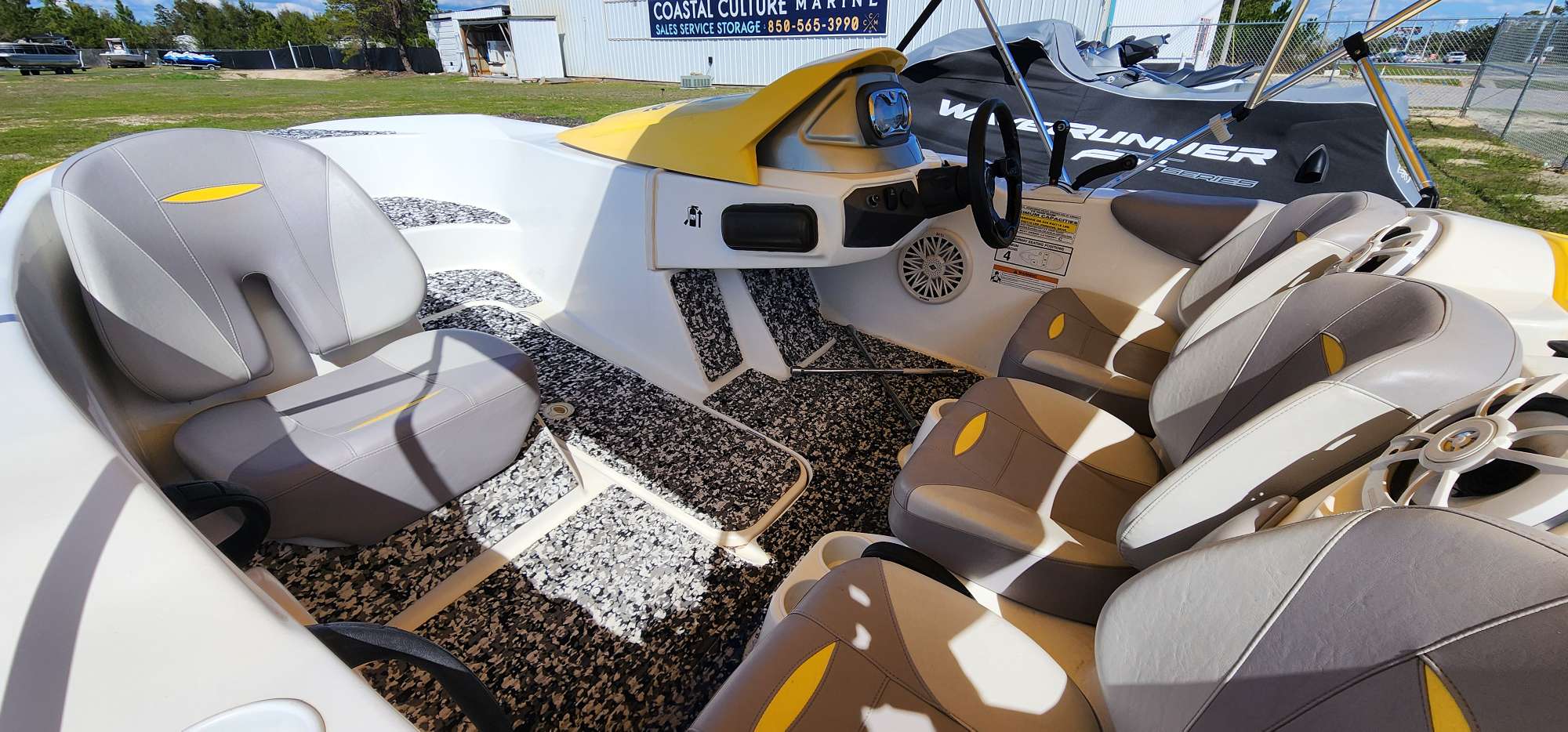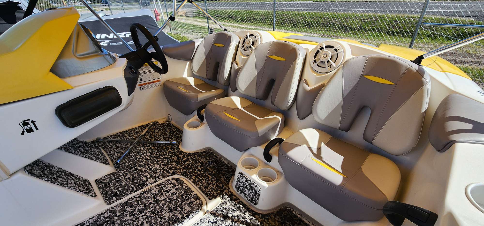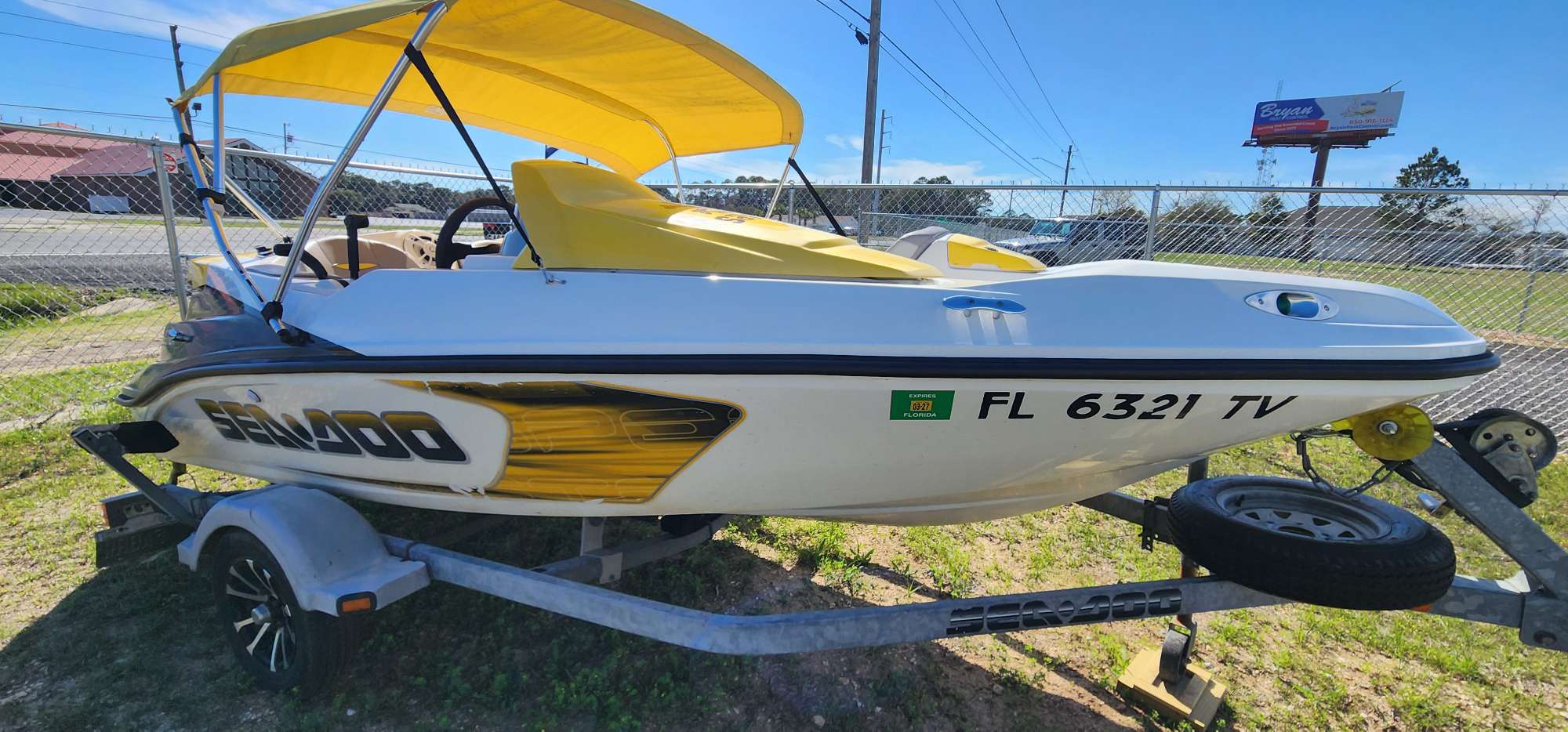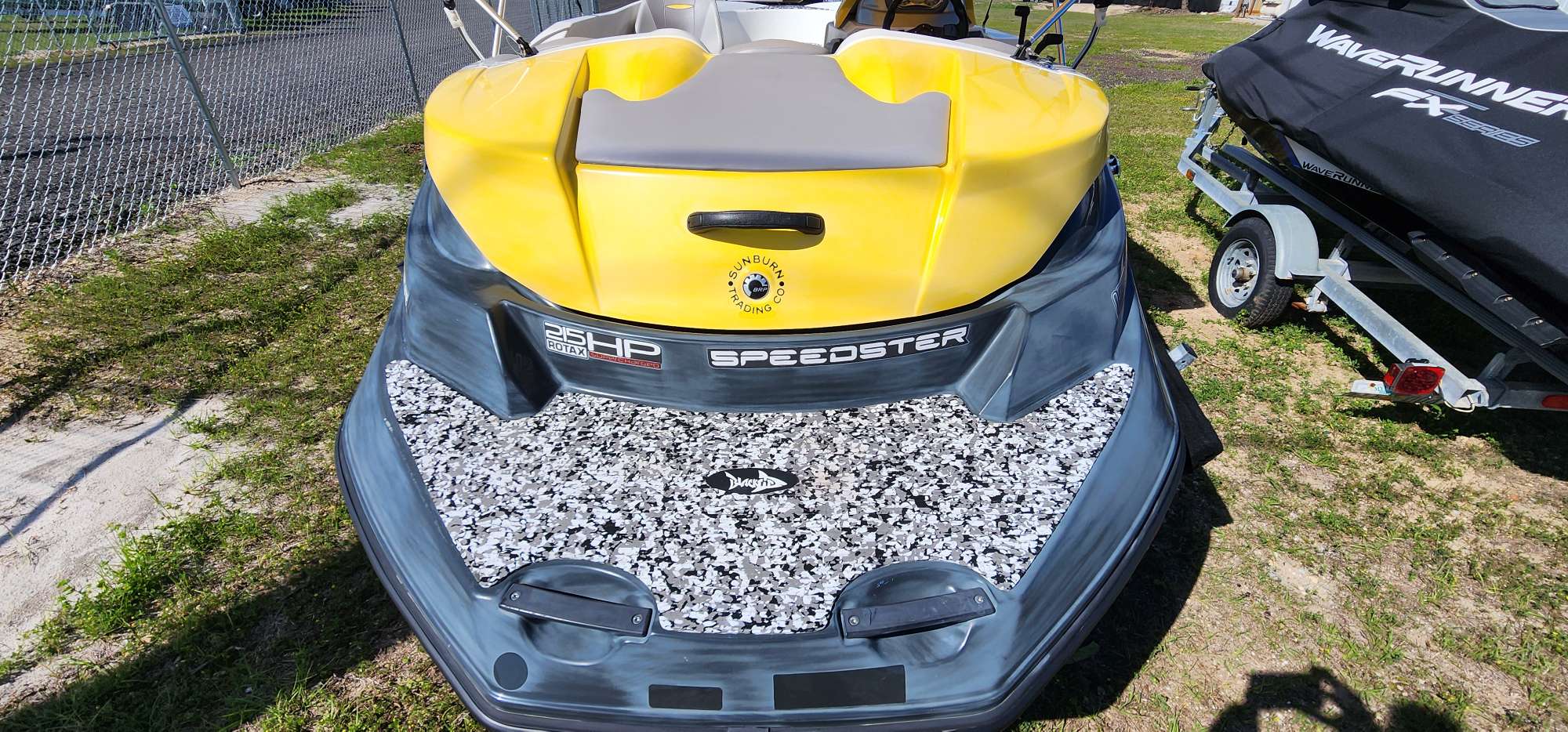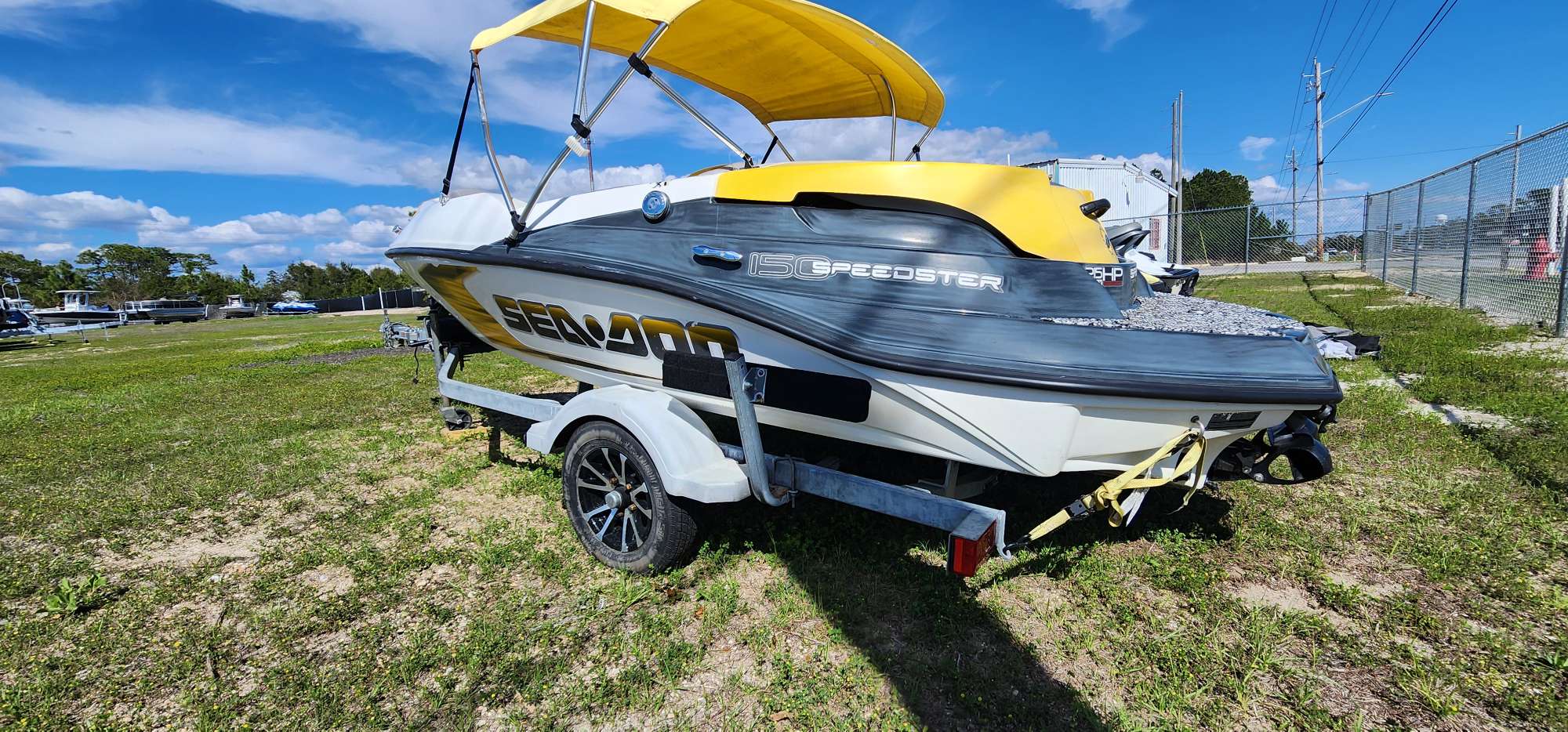 The 2008 Sea-Doo Speedster 150 is a compact 15-foot 4-inch jet boat designed for high-performance water sports, featuring a 4-person capacity and a supercharged 1494cc Rotax 4-TEC engine (typically 215hp or 255hp). It offers 60+ MPH speeds, direct steering responsiveness, a 21-gallon fuel tank, and weighs approximately 1,454 lbs.