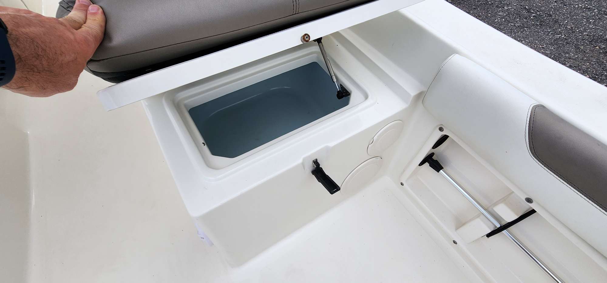 The boat's unique catamaran hull provides a stable and comfortable platform for fishing, ensuring that you can focus on reeling in the big catch.
