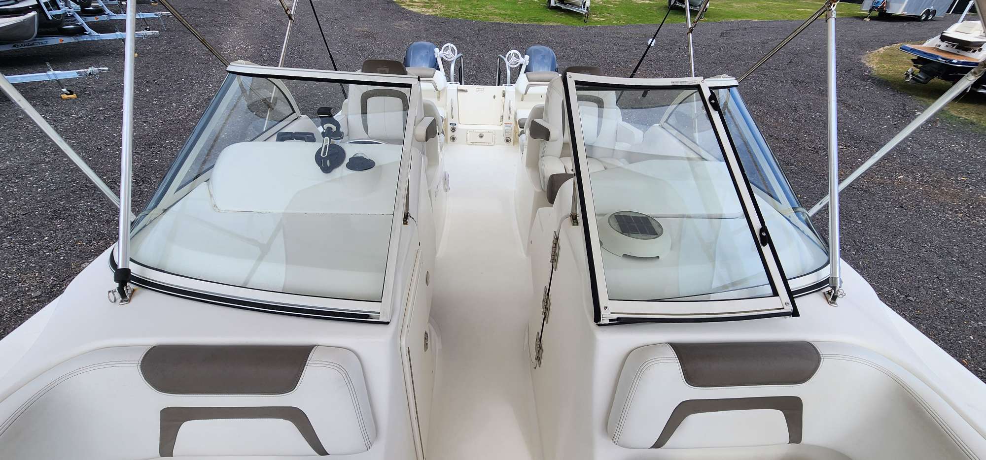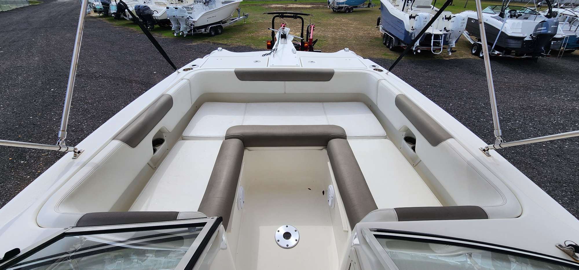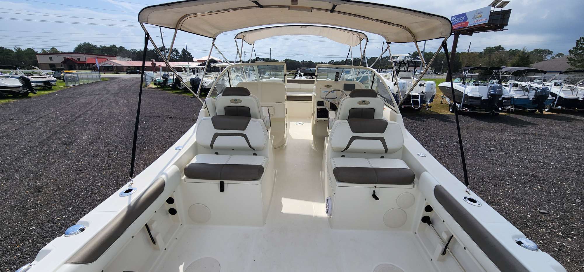 This 2019 255 is a perfect mix of fish and cruise. The perfectly maintained Yamaha 150's only have 600hrs. Incredible shade with the double bimini-top option. This boat is serviced and ready to hit the water